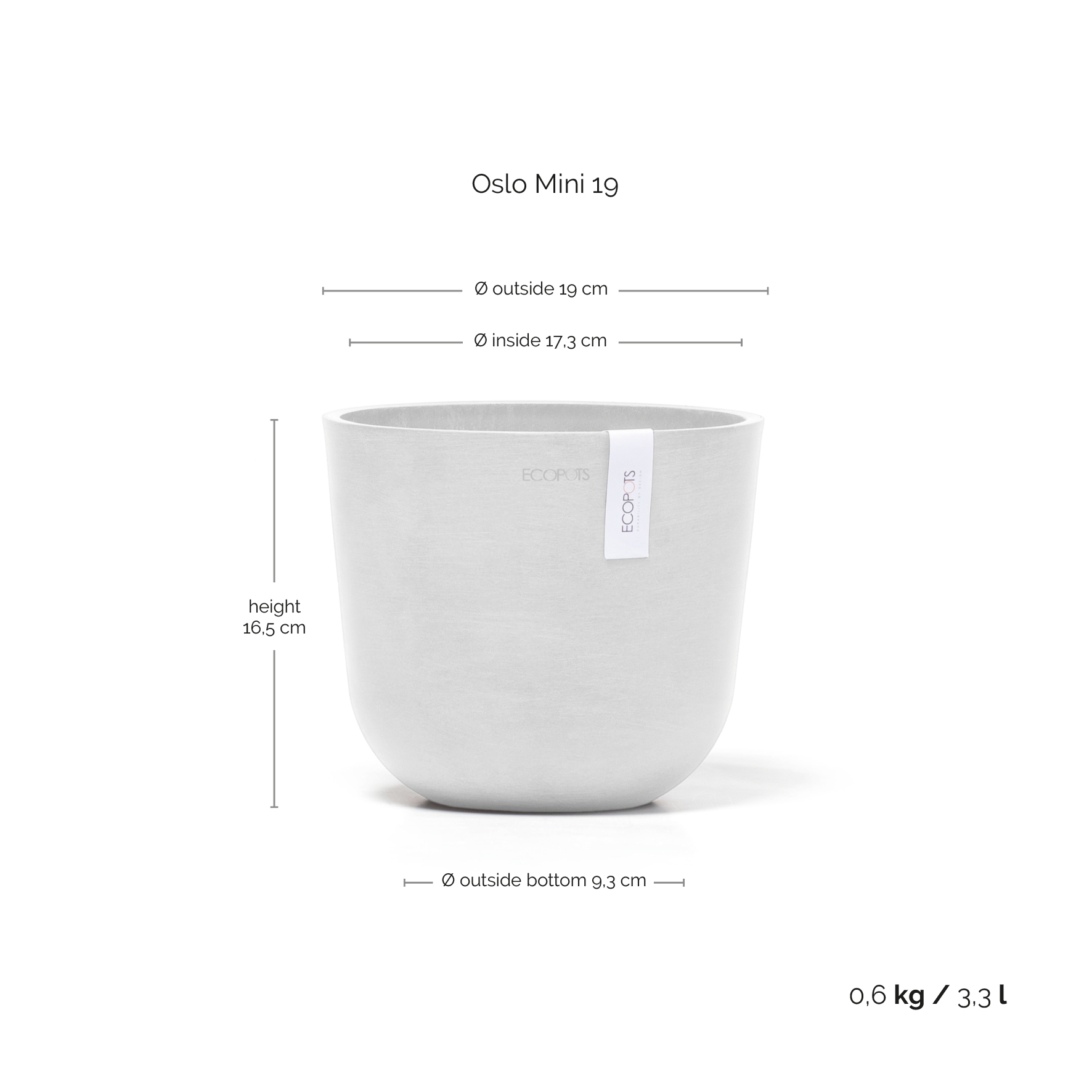 Ecopots Γλάστρα Oslo mini 19 White Grey