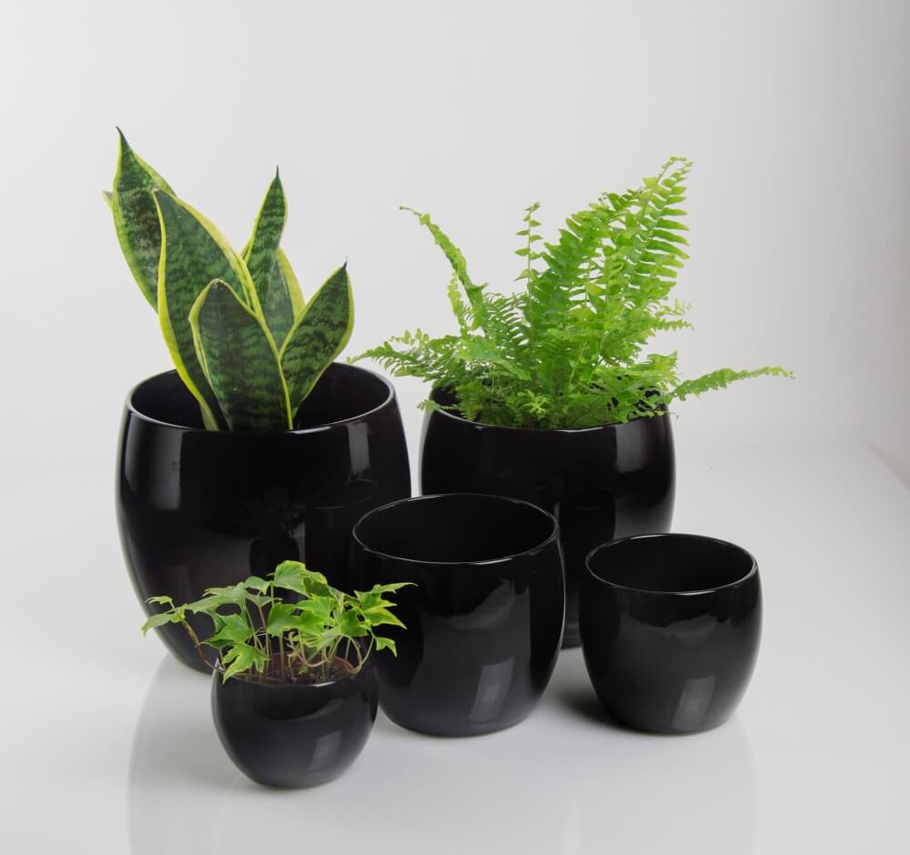 Διακοσμητικά είδη και γλάστρες από εφυαλωμένα κεραμικά.