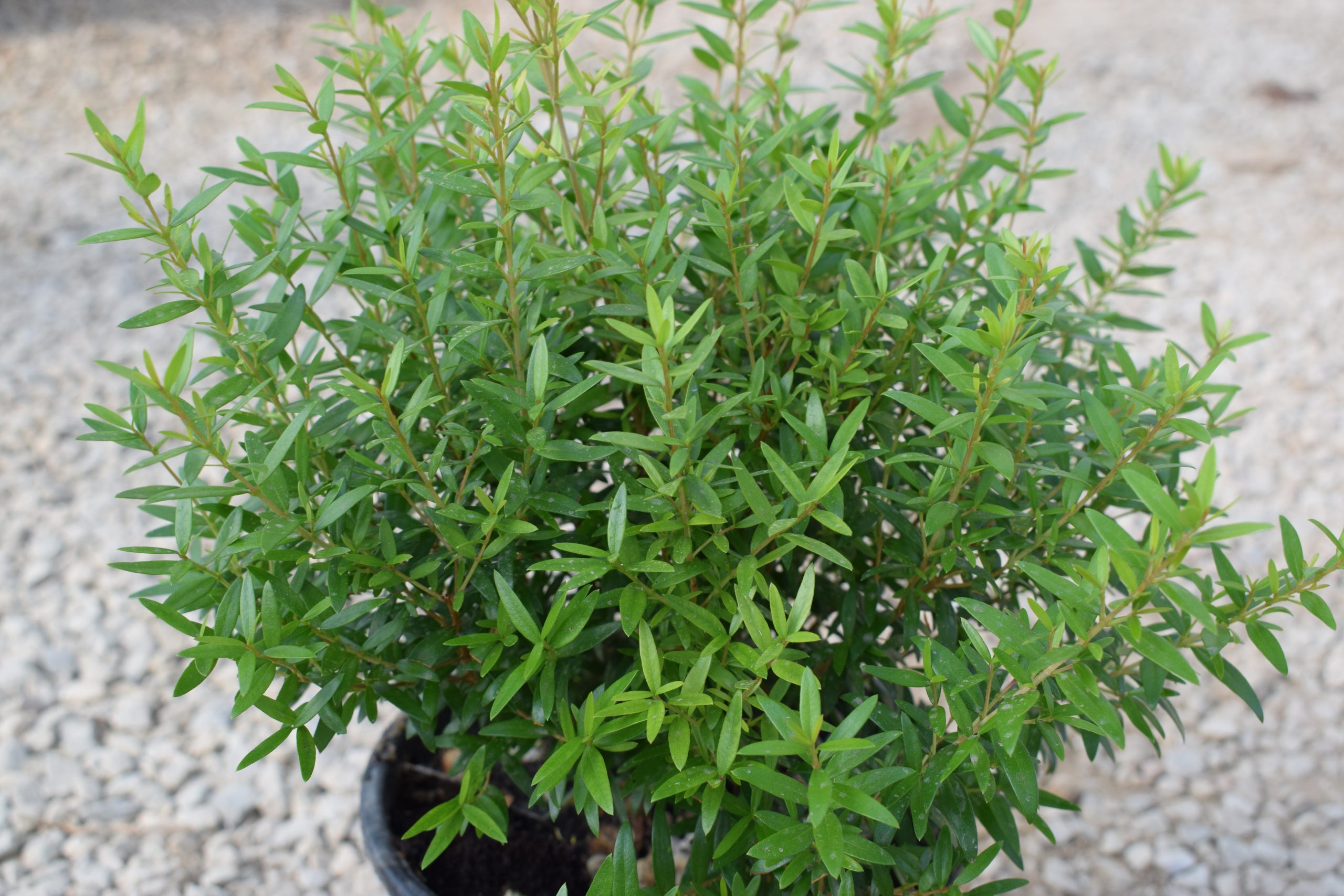 Θάμνος αειθαλής, ύψους έως 1-1.5 m, με αρωματικά, λογχοειδή, βαθυπράσινα φύλλα και άνθη λευκά και επίσης αρωματικά. Έχει χαμηλότερη ανάπτυξη από την κανονική μυρτιά αλλά είναι πιο ανθεκτική στο ψύχος. Προτιμά θέσεις ηλιόλουστες και απάνεμες, αλλά μπορεί να μεγαλώσει πολύ καλά και σε σκιερά σημεία. Τον χειμώνα τα άνθη του γίνονται μαύροι καρποί.