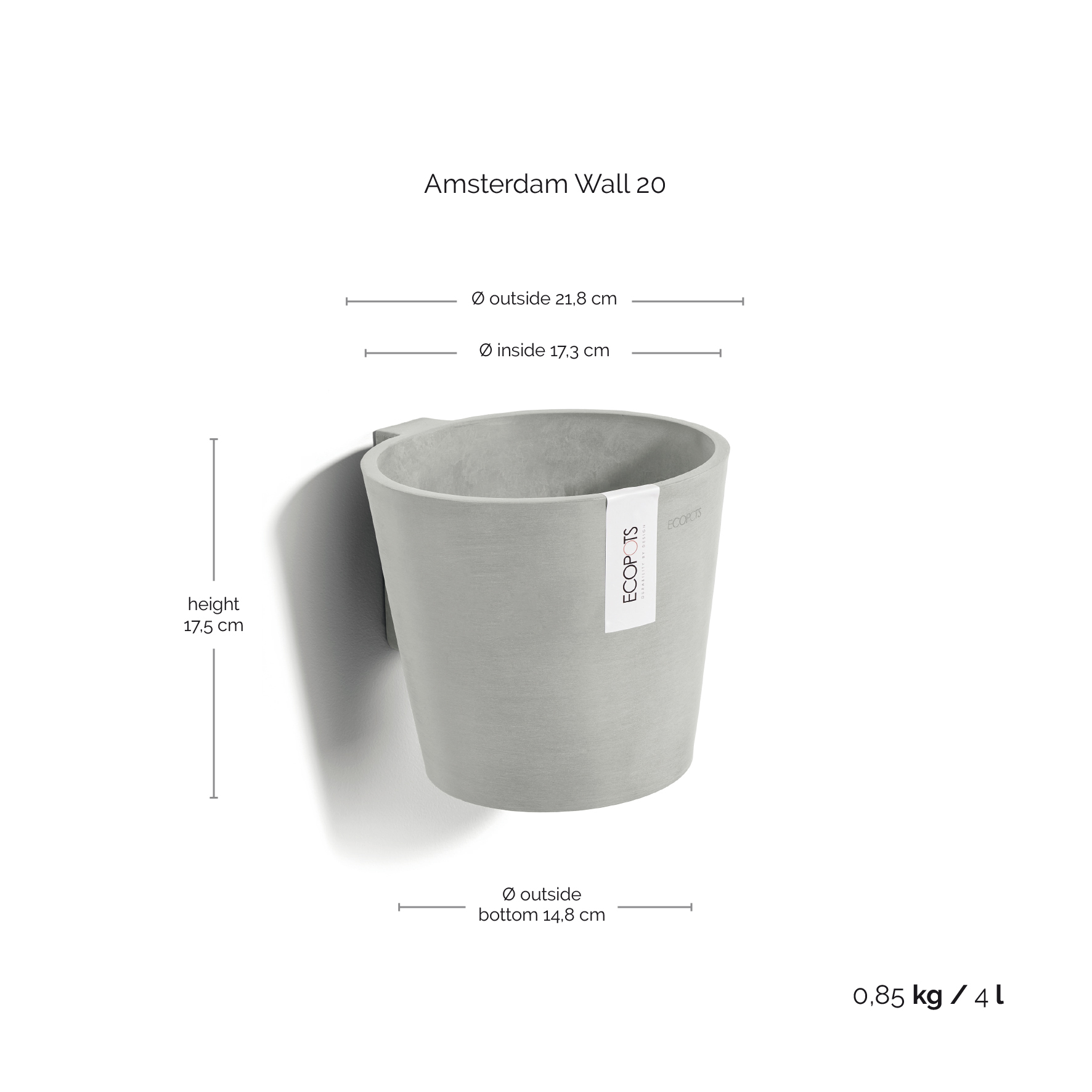 Ecopots Γλάστρα Amsterdam Wall 20 White Grey
