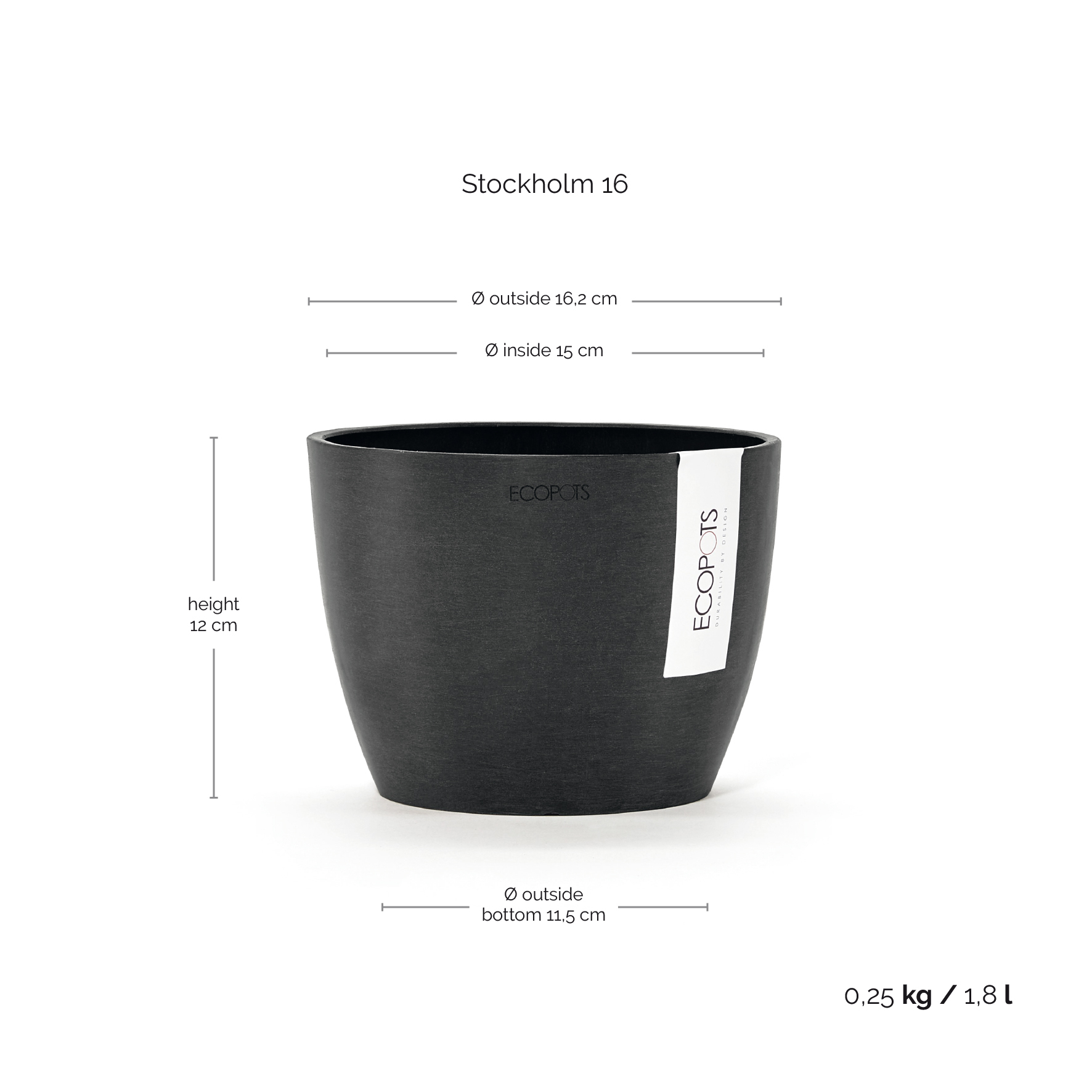Ecopots Γλάστρα Stockholm 16 Dark Grey